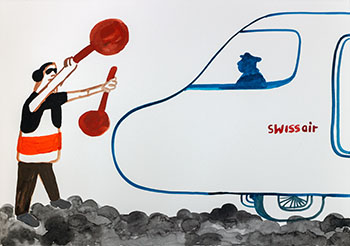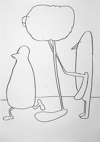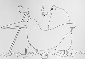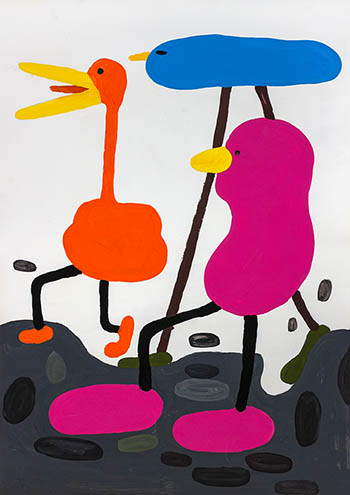 Zeichnungen und Gouachen auf Papier (Auswahl) aus der Serie / drawings and watercolors on paper from the series "Big Birds, Small Birds", 2019/2020, 29,7x42 cm | ||||||||||||||
