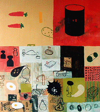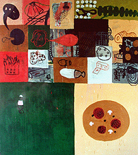 "menues", 5-teilige Serie, je 170x190cm, Öl auf Leinwand, 1995. | |||||||||||||
