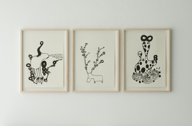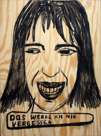 | Antje Dorn Paper Works 8.5.-11.7.2015 Galerie m Bochum is presenting from 8 May to 11 July 2015 works on paper by the Berlin artist Antje Dorn (b. 1964 in Aachen). Dorn’s “Rare Animals and Numbers,” and “Imbisse” series are being shown as part of our “Feature” series of exhibitions. The title “Rare Animals and Numbers” (2006) succinctly describes the main motifs of these ink drawings. Curious four-legged creatures resembling dogs, sheep, donkeys and other familiar animals share the white paper plane with numbers from 0 to 9. In our rational understanding, two completely different “worlds” collide here: that of living beings and the abstract, mathematical realm of numbers. Dorn harmonizes these opposing themes in her own special way by lending the numbers the mass and weight of objects while the animal forms become mere immaterial graphic outlines. Rendered in this fashion, the “zeros,” “ones” or “eights” coexist side-by-side with the fleet-footed creatures, interrelating with them in a peaceful-seeming symbiosis. The first driver’s license in history was acquired by a woman. Nevertheless, driving in the early days of automotive history was mostly the preserve of men. Clichés and prejudices thus soon abounded about women’s relationship to cars, also manifested in pictures. Antje Dorn takes a humorous look at this genre in her gouache series (2000/01), displaying a number of different facets. Instead of trying to look alluring, Dorn’s “motorgirls” appear confidently and sometimes helpless at the wheel of a car or doing their own repairs in comical exaggeration. The series of ink drawings titled “Imbisse” (Snacks, 2003) shows individual buildings, sometimes with the character of objects and in other cases with a futuristic or improvised look. Large billboards on their facades or roofs are emblazoned with words referring to “beans,” “Tomatoes,” “blaukraut” (red cabbage) or other staple foods, alluding to the possible function of the fantasy buildings as production sites or points of sale. Dorn explores here buildings typical of the cityscape whose undistinguished forms are often at odds with the products they advertise. The disproportionate emphasis of the product names reveals the absurdity of their marketing. The three series on display all demonstrate Antje Dorn’s consuming interest in the imagery that surrounds us in our daily lives. She toys with our viewing habits by changing the contexts of certain pictorial elements, thus allowing us to see them with new eyes. Through humorous exaggeration or by taking things to absurd extremes, she thus sharpens our awareness of many aspects of our everyday culture. |