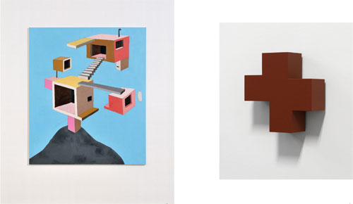 | Antje Dorn, #6 aus der Serie "Bauten", 2013, Öl/Leinwand, 170 x 140 cm François Perrodin, "74.14", 2013, Acryl/Holz, 27 x 27 x 9 cm |