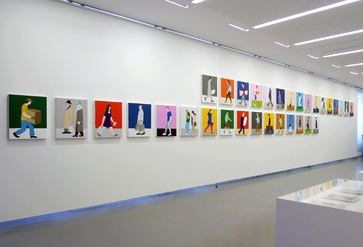 Installationsansicht der Serie / Installation view of the series "Passage" (detail), frieze of 32 paintings, each 60x50 cm, oil on canvas, 2016/17 Galerie m, Bochum 2017 |